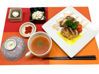 デイサービスセンター内に「やすらぎ亭」があります。「本当に美味しい昼食を食べて頂きたい!!」その想いから・・・厨房を新設し、専属コックさんがデイサービスセンター内で調理し、ホカホカのお食事をご提供しています。また、毎月食事イベントと題して多国籍料理や食事選択日も設けています。お味はもちろんの事、目で見ても楽しめる昼食を是非一度、お召し上がりください。