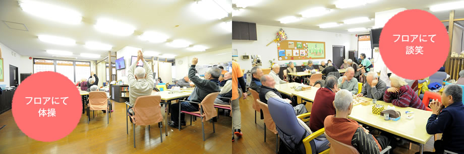 一日の中に色々な催しがありますが、お昼寝もできるベッドスペースもあります。また、看護師や介護職員が、ご利用者様の健康に気を配っておりますので、体調の変化などありましたら、ご遠慮なく申し付けてください。